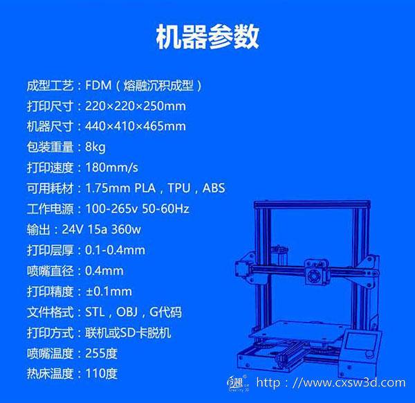 •   3d打印技術(shù)起源于歐美,并且快速發(fā)展于國內(nèi);大大小小的3D打印機公司已占據(jù)制造業(yè)一部分市場。FDM桌面級3D打印機與其他類型相比有體積小,成本低的特點,都能方便放在桌面操作使用。所以能在消費市場廣泛應(yīng)用。   近幾年來桌面級3D打印機在教育、創(chuàng)客空間及個人設(shè)計等領(lǐng)域表現(xiàn)強勢,創(chuàng)想三維研發(fā)團隊傾力打造的2018年度明星產(chǎn)品Ender-3S千元級優(yōu)質(zhì)3D打印機,一經(jīng)上市,便受到各界人士的青昧。創(chuàng)想三維依托自身高效的產(chǎn)能,在不降低品質(zhì)和可靠性的前提下縮減了成本,才有了這款千元級優(yōu)質(zhì)3D打印機Ender-3S的誕生。 [圖片]   Ender-3S用V型材組建I3架構(gòu),極聚創(chuàng)新設(shè)計,緊跟潮流的步伐,融入經(jīng)典元素,打造新一代引領(lǐng)潮流的經(jīng)濟型DIY 3D打印機。   Ender-3S的產(chǎn)品優(yōu)勢:   一體式結(jié)構(gòu)配合超大打印尺寸,節(jié)省空間但打印尺寸;   專利技術(shù)一:MK-10擠出機構(gòu),降低堵頭和不良溢出的風(fēng)險;   專利技術(shù)二:V型材和塞剛滑輪,運動平穩(wěn),順暢,噪音小及耐磨;   新型自帶粘性打印平臺貼紙,代替?zhèn)鹘y(tǒng)美紋紙和膠水,解決打印翹邊問題同時節(jié)省打印成本;   安全保護裝置電源,配置斷電續(xù)打功能,實現(xiàn)長時間打印;   5分鐘實現(xiàn)熱床溫度達到110度,實現(xiàn)快速加溫和打印ABS耗材的需要;   CNC加工Y軸安裝槽,精準定位,穩(wěn)定結(jié)構(gòu),實現(xiàn)高精度打印;   大的手擰螺母,使打印平臺更容易升級; [圖片]   Ender-3S 3D打印機可以將創(chuàng)意變成現(xiàn)實,有所想即所得的功能,這款3D打印機擁有220x220x250mm的成型尺寸,在這個價格中絕對稱得上高性價比!早期DIY組裝機結(jié)構(gòu)簡陋,而且操作過于復(fù)雜,打印效果一言難盡,很快這些3D打印機就淪為‘?dāng)[設(shè)’。而Ender-3S桌面型3D打印機雖然定價不高,但是它的做工及性能一點也不含糊,操作方便上手,功能又非常的齊全,關(guān)鍵是打印效果好!   Ender-3S延續(xù)了創(chuàng)想三維一貫的高水準,并對核心功能模塊進行全面優(yōu)化升級,同時配備斷電續(xù)打等功能,由此受到了很多用戶的好評!目前該款3D打印機已暢銷海內(nèi)外。   想了解更多請點擊:www.cxsw3d.com   創(chuàng)想三維3D打印行業(yè)交流群456955778,歡迎你的加入!!