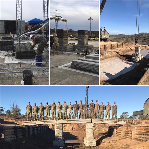 美國陸軍工程師研發中心(ERDC)的研究人員最近在機械工程師梅根·克里奇(Megan Kreiger)的帶領下,在南加州彭德爾頓營3D打印了一座32英尺長的鋼筋混凝土人行橋??死锲娴哪繕耸?D打印貝利大橋的現代版本。她說:“如果我們能夠建造一座能夠支撐坦克的橋梁,那將是一件了不起的事情?!?/p>