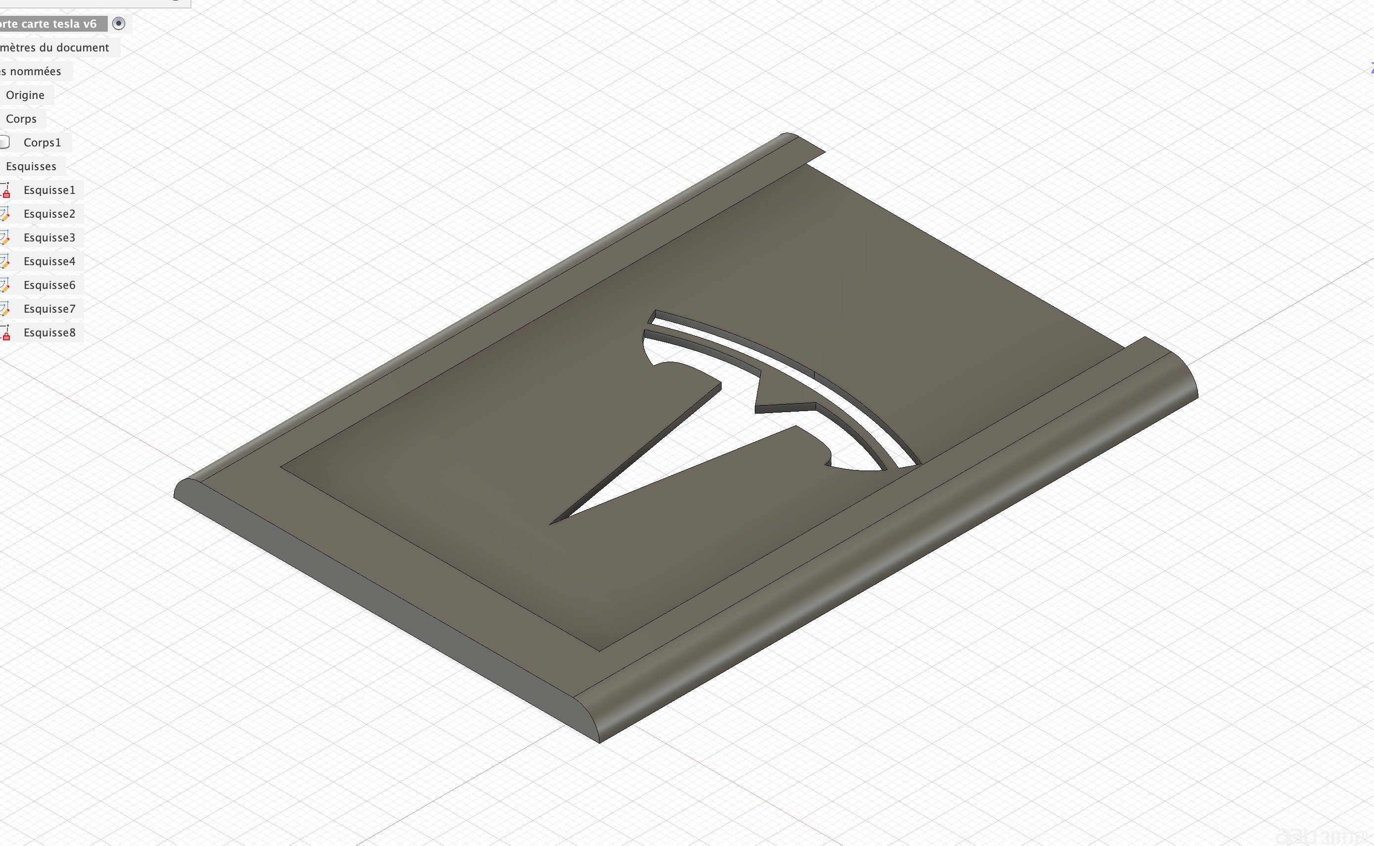 該模型的設計靈感來源于特斯拉的標志性產品,外形呈現出特斯拉品牌的獨特風格。它通常由兩個零件組成:一個固定夾持鑰匙卡的托盤和一個連接到墻面的支架。通過將鑰匙卡插入托盤中,特斯拉車主可以將鑰匙卡放置在墻上,既方便取用,又能有效避免丟失。