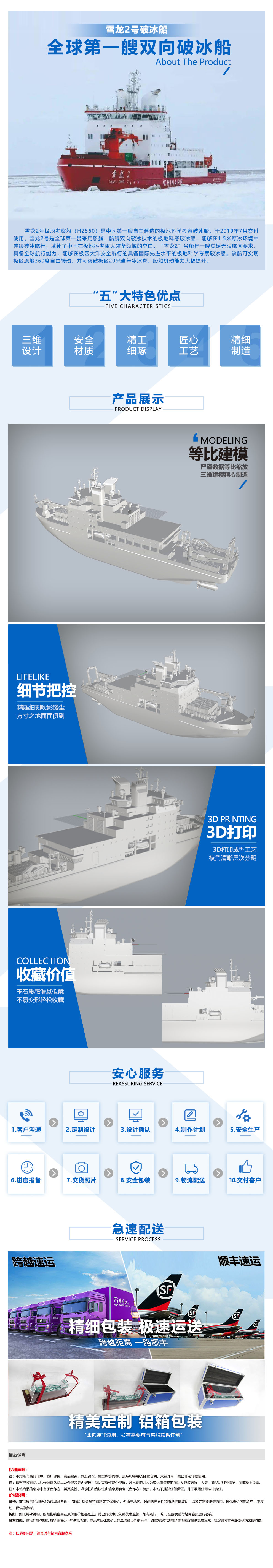 破冰船|極地考察船|極地科學考察破冰船|科考船|雪龍二號模型居家辦公擺件紀念品收藏禮品贈送