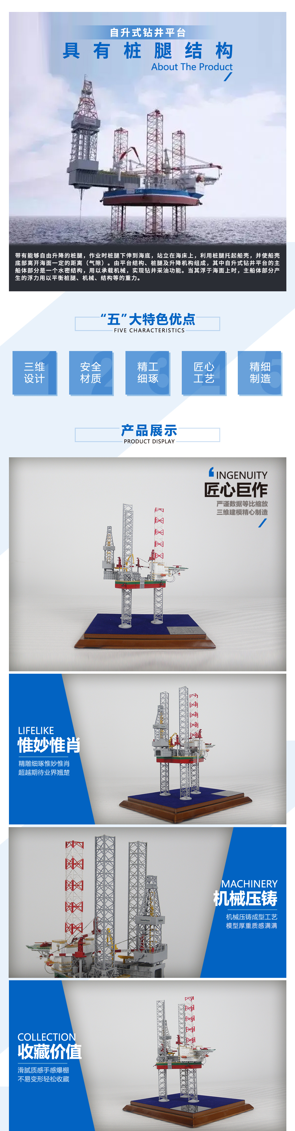 JU2000E型自升式鉆井平臺定制海洋工程船模型工程船模制作