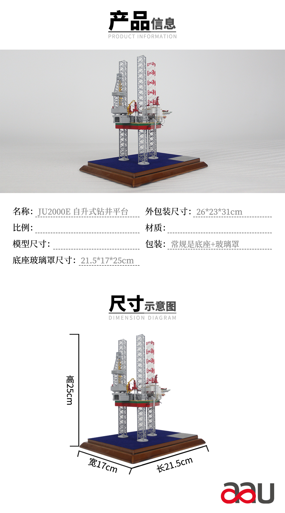 首頁 > aau商城 > JU2000E型自升式鉆井平臺定制海洋工程船模型工程船模制作