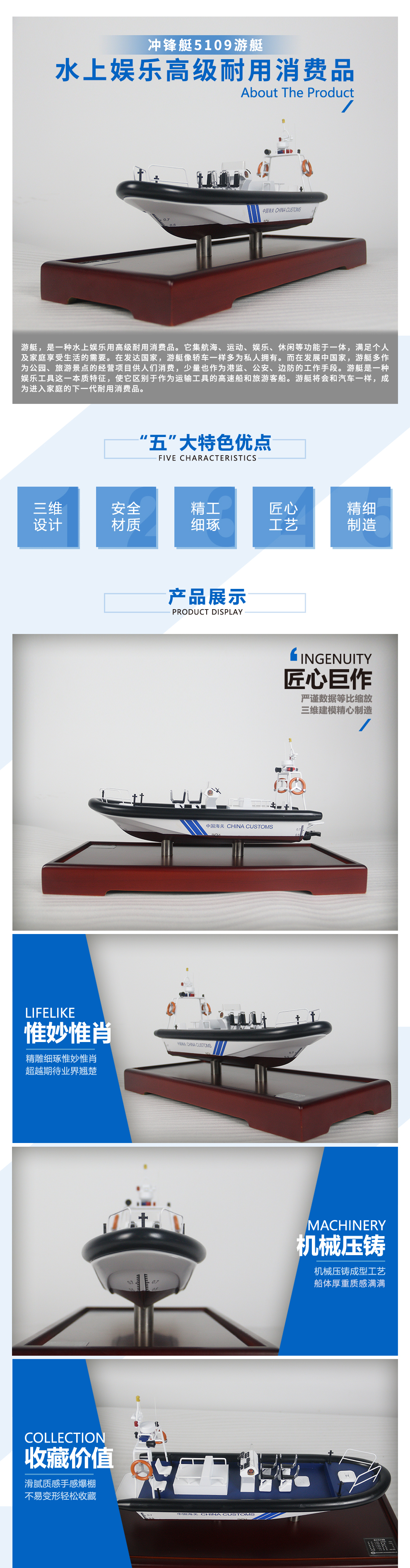沖鋒艇5109游艇模型