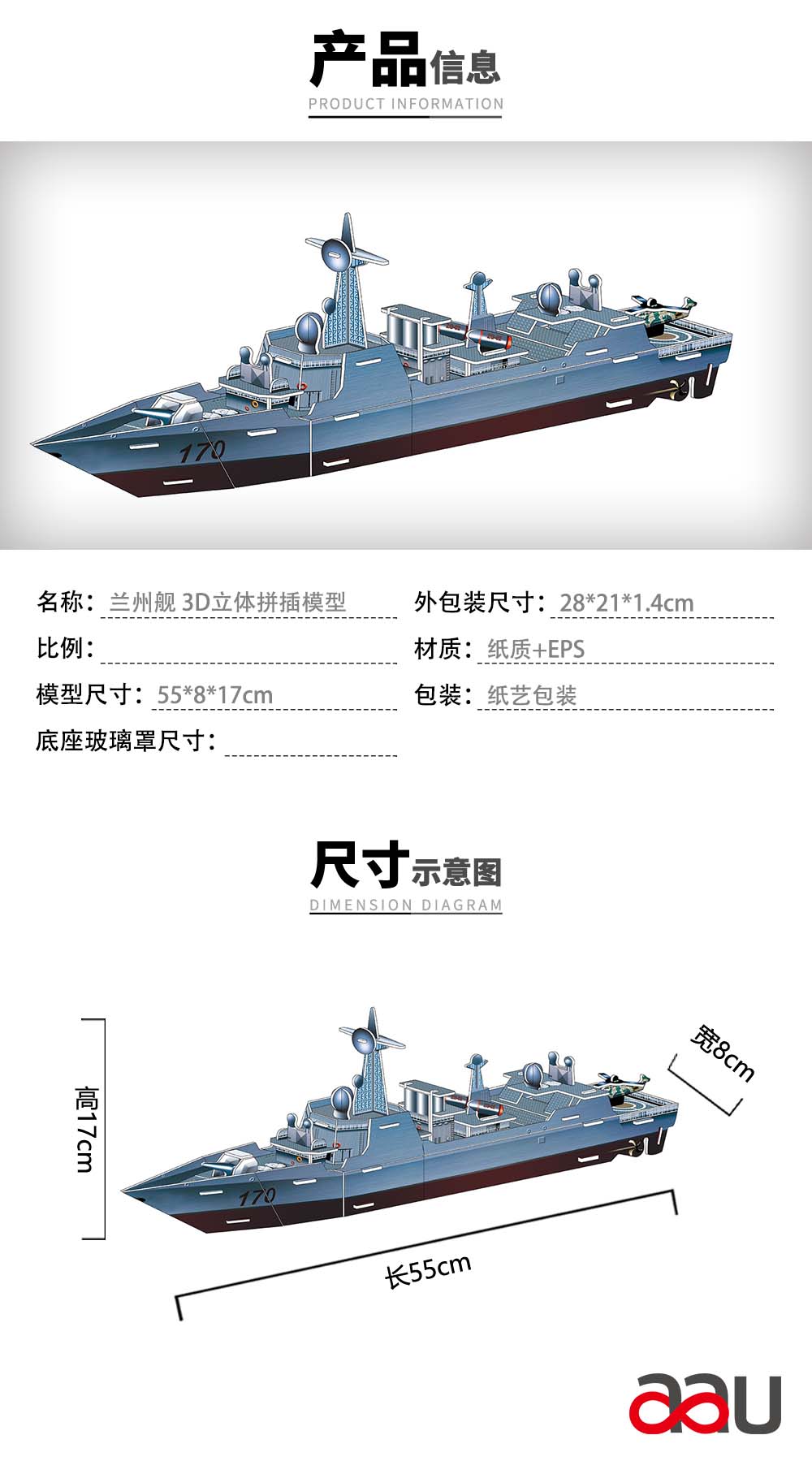 首頁 > aau商城 > 蘭州艦驅逐艦 3D立體拼插模型