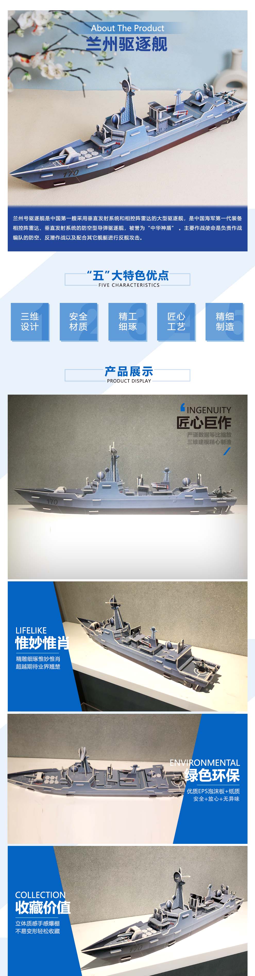 蘭州艦驅逐艦 3D立體拼插模型