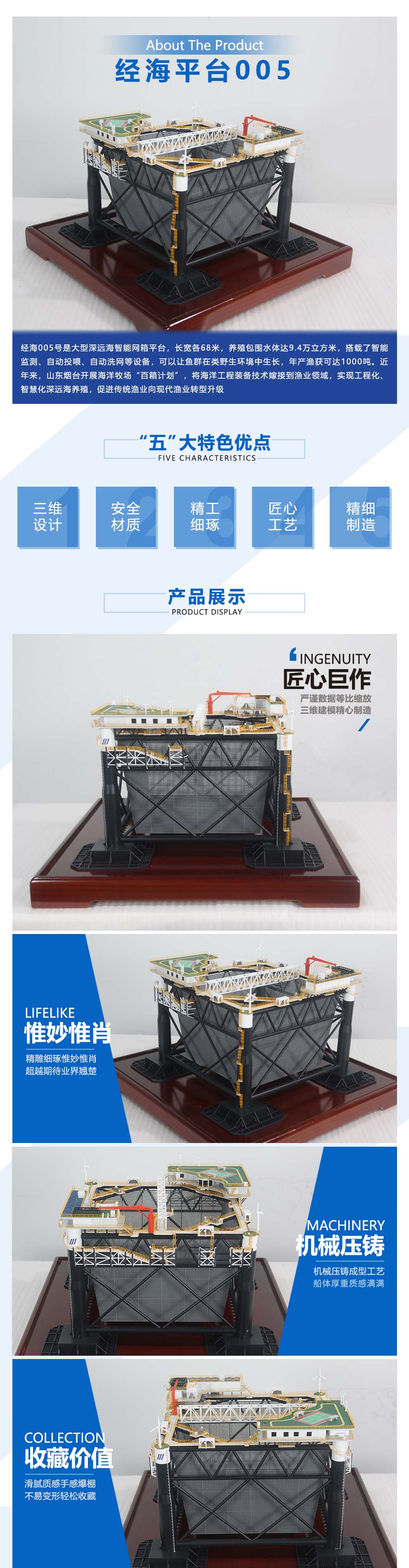 經海平臺005半潛式生活平臺工程船|深水智能大網箱平臺居家辦公擺件紀念品收藏禮品贈送