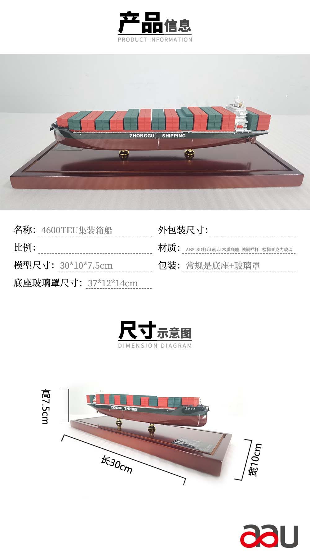 首頁 > aau商城 > 4600TEU箱集裝箱船|集裝箱船雙子座木制底座可作伴手禮品收藏