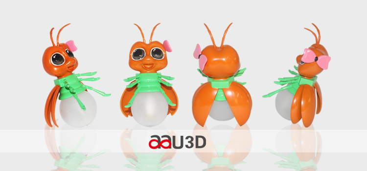 AAU 3D打印螢火蟲燈尺寸為15*9*8(cm)。整個螢火蟲燈的材料為進口白色光敏樹脂,采用SLA(立體平板印刷)3D打印技術而成,精度可達到0.01mm,經過拋光、打磨、噴漆后組裝而成,按照客戶提供的圖片效果進行上色處理。螢火蟲燈只花了7天的時間,比傳統工藝方便了許多。