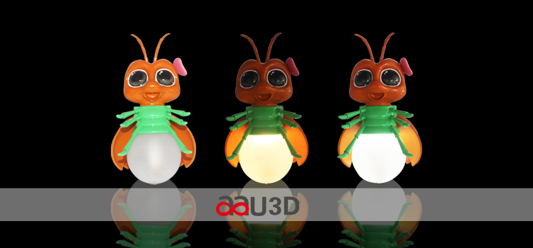 在模型設計階段,AAU3D的建模師會根據螢火蟲的形狀進行卡通化的變形,使之更接近大眾人群的審美。藝術化的呈現方式,帶給人全新的視覺體驗。設計好螢火蟲燈模型后,AAU使用3D打印機將它打印出來,就可以得到一款美輪美奐且科技感十足的螢火蟲燈。